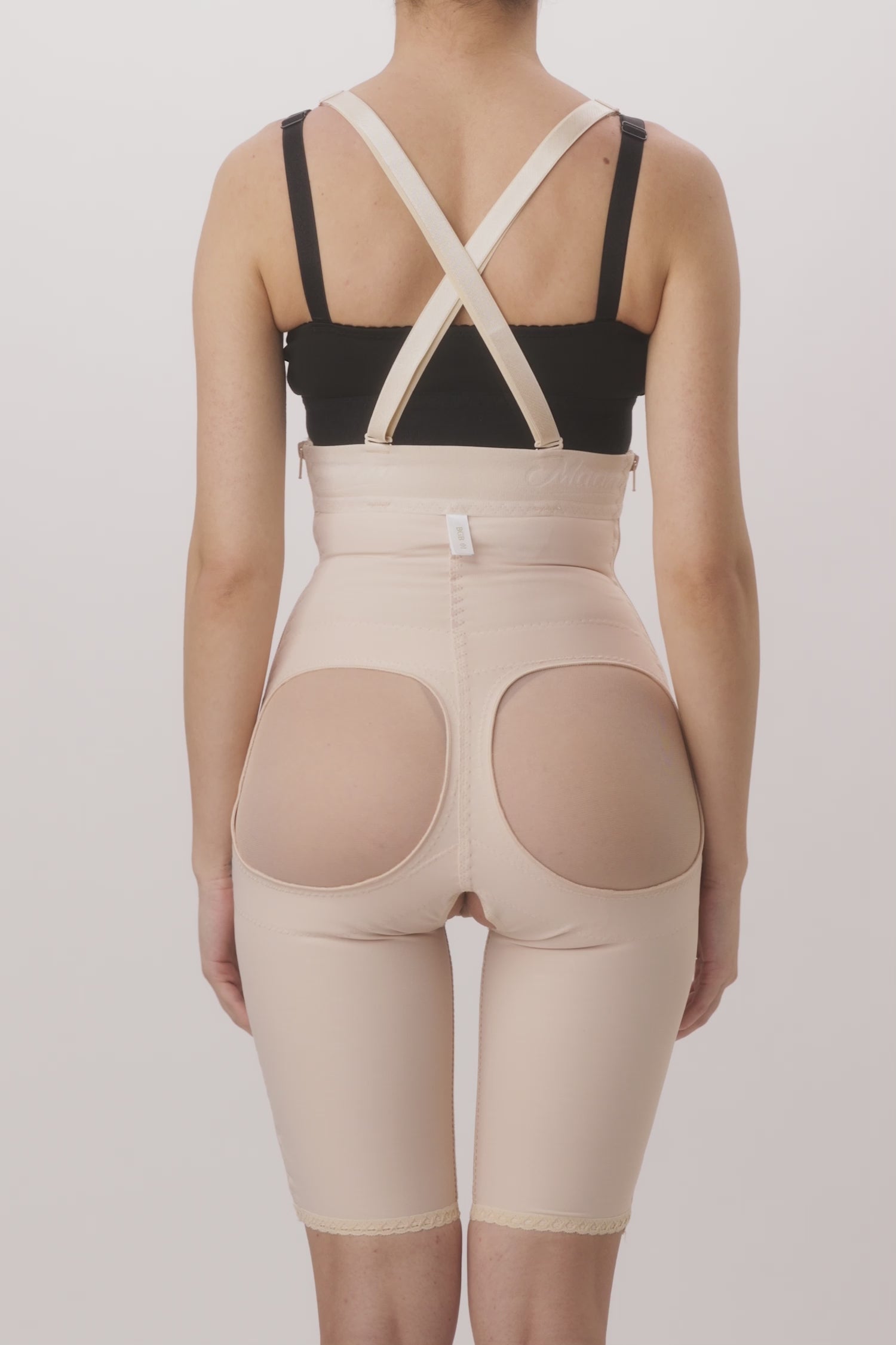 Spodnie uciskowe Gluteoplastyka lub lifting brazylijski I etap, kod BGB01, stosowane w pierwszym etapie po zabiegu chirurgicznym (od 4-6 tygodni, w zależności od zaleceń lekarza), w celu ucisku i wsparcia po zabiegach takich jak: glutoplastyka, lifting brazylijski, powiększanie pośladków poprzez wstrzykiwanie tłuszczu, liposukcję ud, bioder i pośladków .